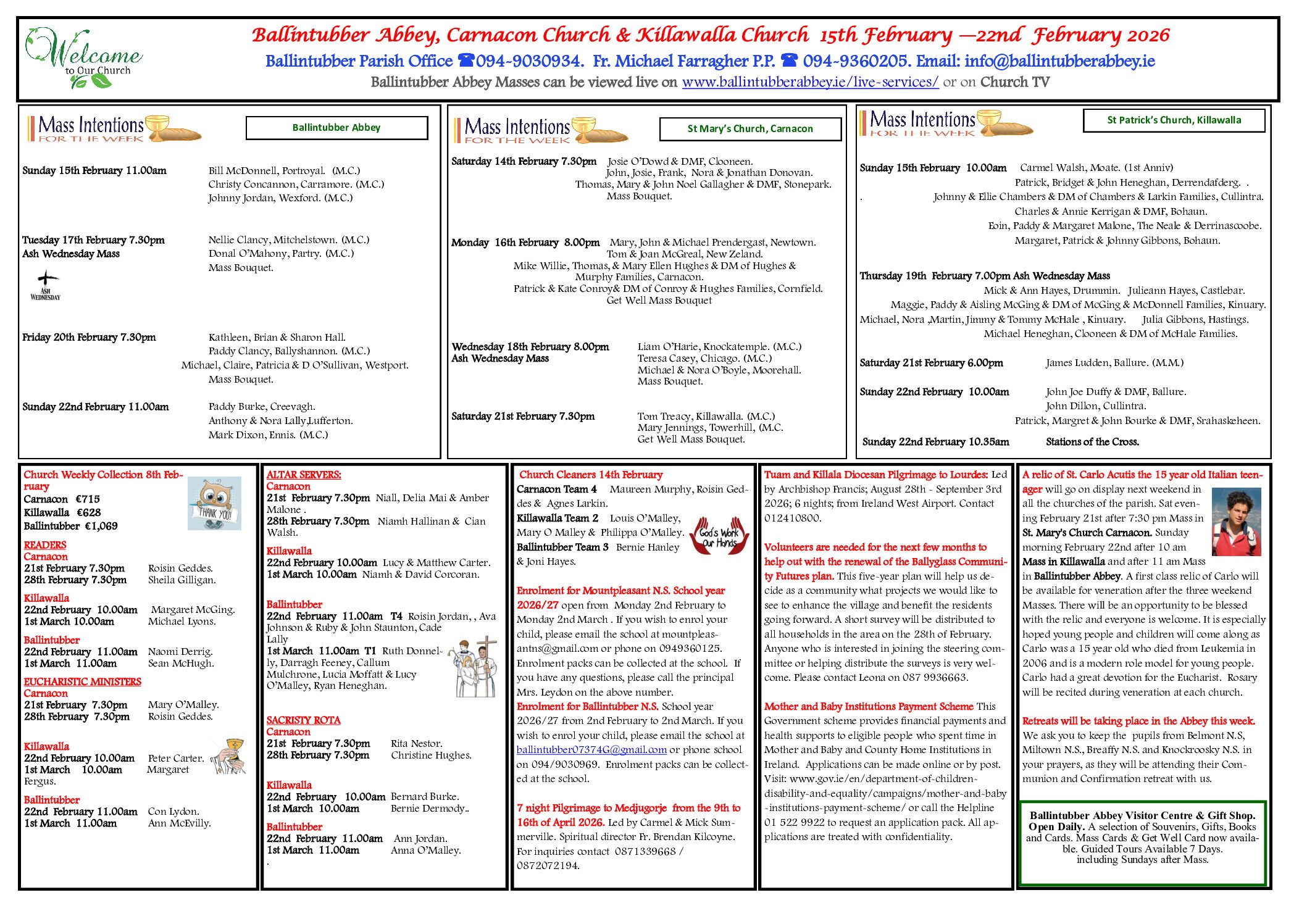 Ballintubber Abbey Newsletter 25th January – 01st February 2026
